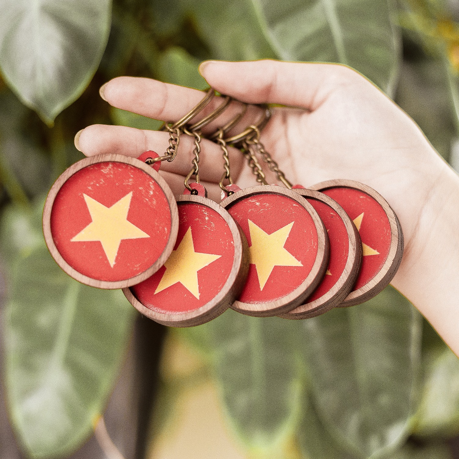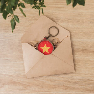 Lấy cảm hứng từ lá cờ đỏ sao vàng, biểu tượng thiêng liêng của lòng yêu nước và niềm tự hào dân tộc, chiếc móc khóa được tạo nên như một dấu ấn nhỏ gọn nhưng giàu ý nghĩa.