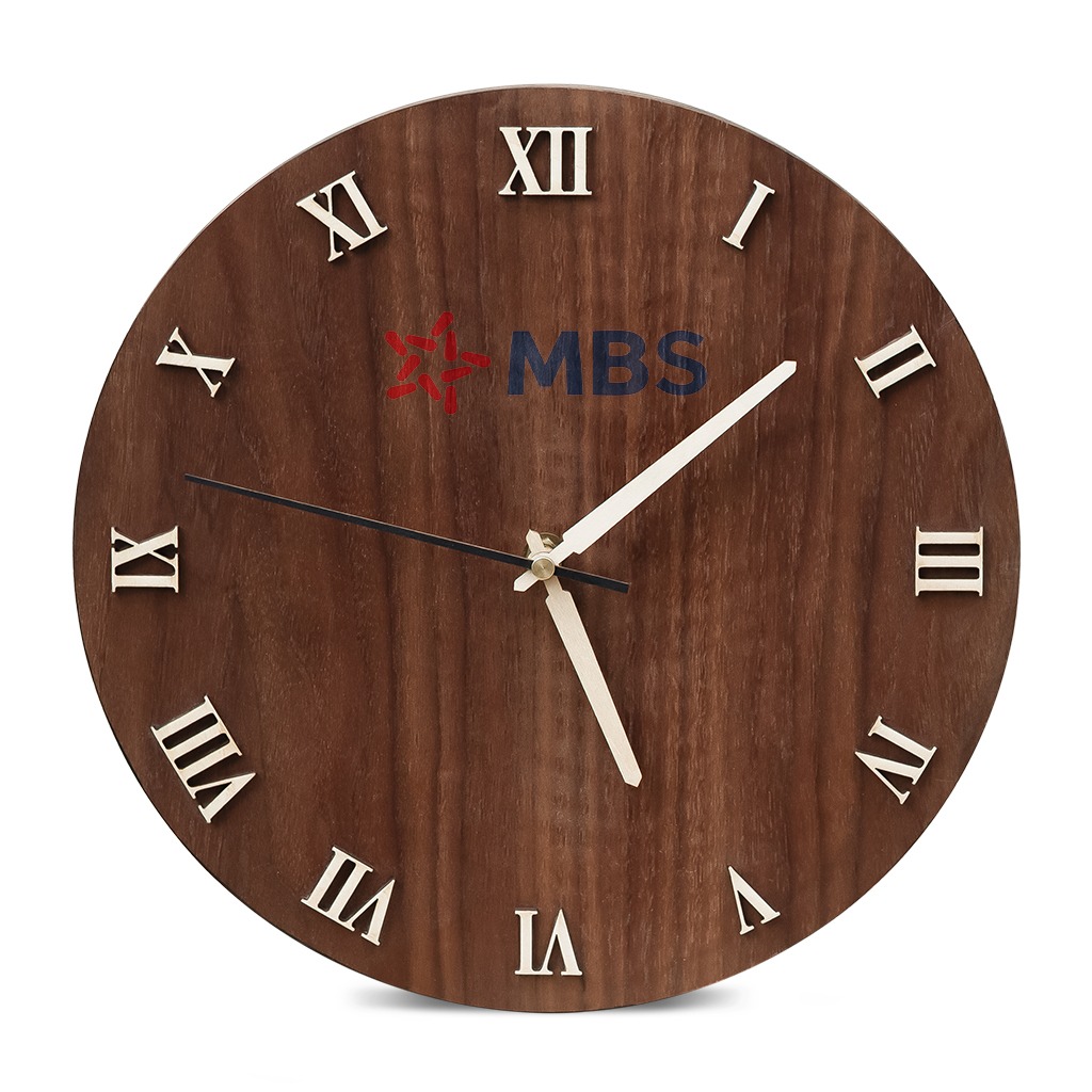ĐỒNG HỒ BASIC 12 SỐ LA MÃ KHÔNG VIỀN | WALNUT | IN LOGO