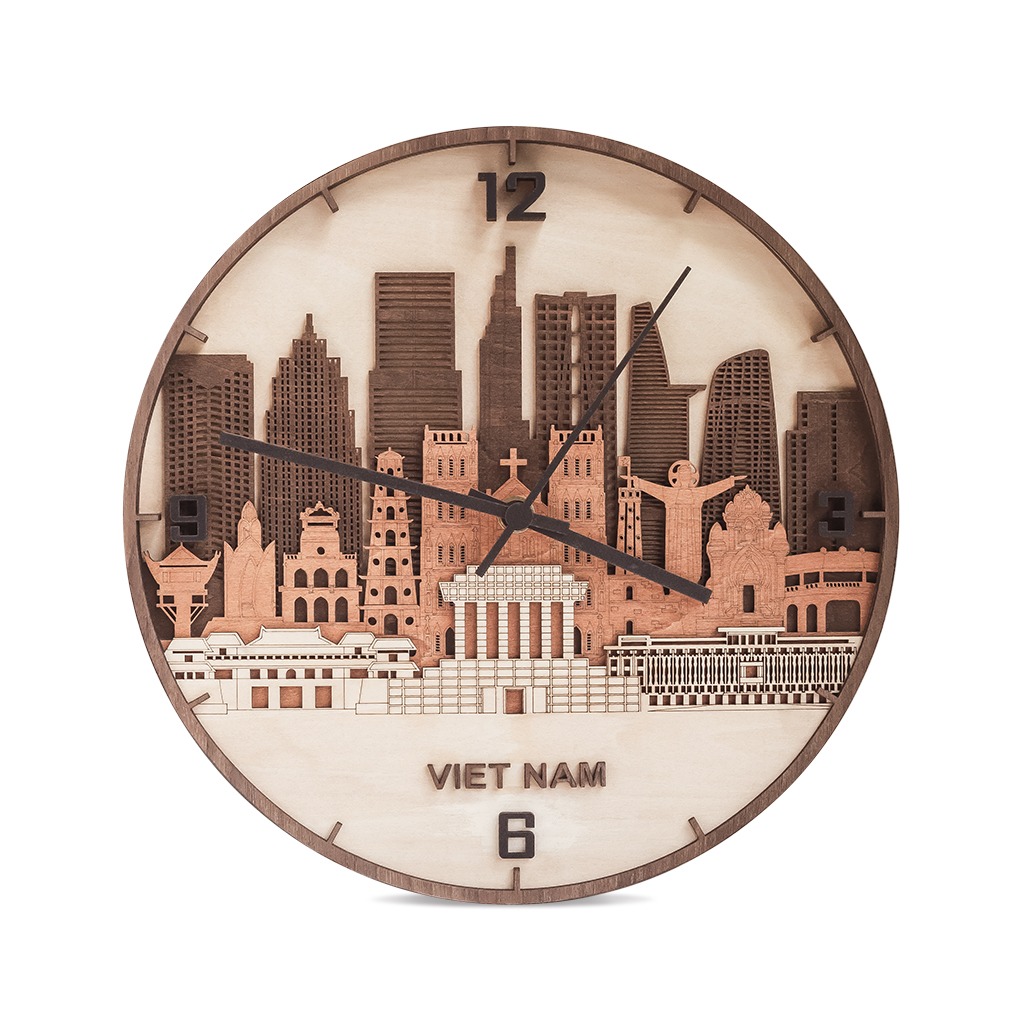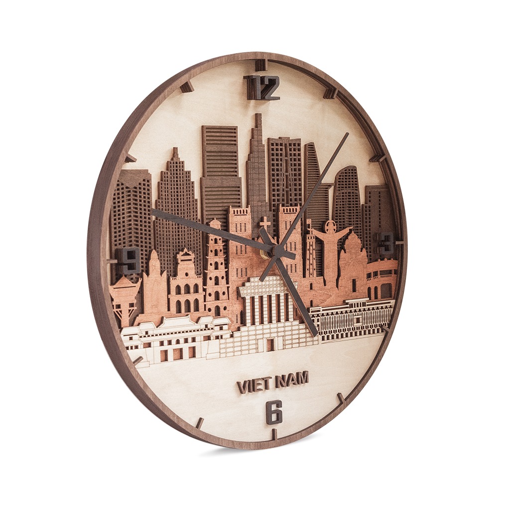 Lấy cảm hứng từ sự giao thoa giữa kiến trúc cổ kính và hiện đại của các thành phố lớn, thể hiện qua hình ảnh các công trình kiến trúc biểu tượng. Đồng hồ gỗ Skyline là sự kết hợp tinh tế giữa nghệ thuật, kiến trúc và văn hóa, mang đến một sản phẩm độc đáo và ý nghĩa, thể hiện sự phát triển của các thành phố qua thời gian.