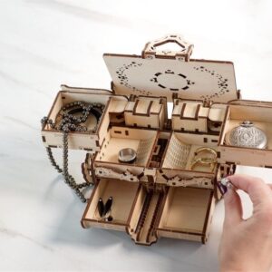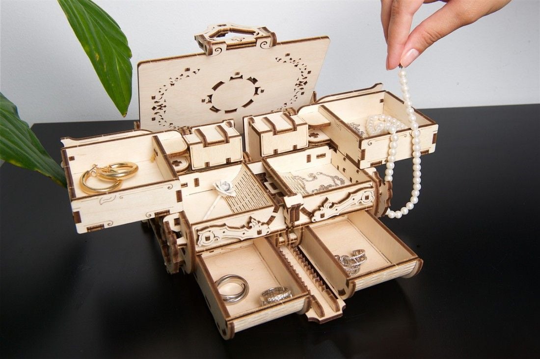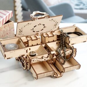 Trong 3 tiếng hoàn thành mô hình, bạn sẽ được trải nghiệm cơ cấu hoạt hoạt động của chiếc hộp đựng kho báu có thể chứa đồ với rất nhiều ngăn riêng biệt, hơn thế nữa còn ẩn chứa 2 ngăn bí ẩn tuyệt đối; kèm với hệ thống khóa rất tinh tế, đơn giản nhưng vô cùng chắc chắn.