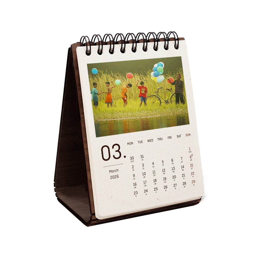 Lịch gỗ form đứng được khơi nguồn từ ý tưởng biến dòng chảy thời gian thành một không gian trưng bày ký ức, nơi từng trang lịch không chỉ mang con số, mà còn là một khung ảnh nhỏ đầy tinh tế. Dáng đứng thanh mảnh giúp lịch dễ dàng đặt trên bàn làm việc, kệ sách hay góc yêu thích trong nhà.