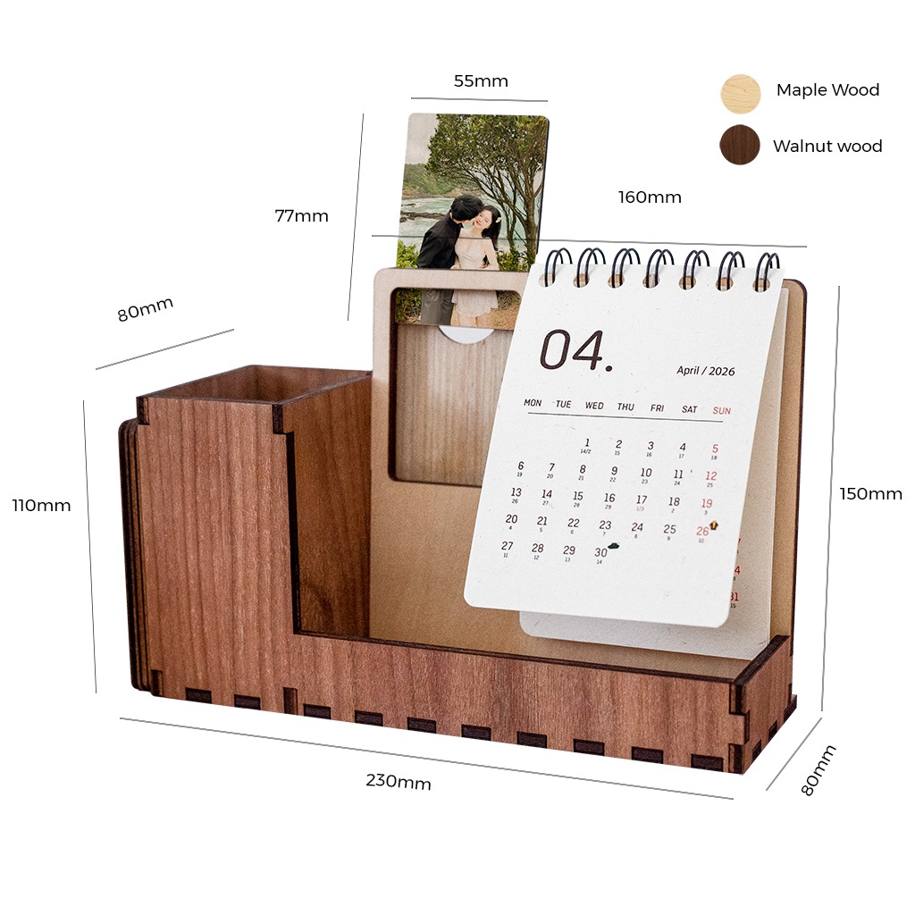 LỊCH GỖ KHUNG ẢNH 2026 | WALNUT KẾT HỢP MAPLE