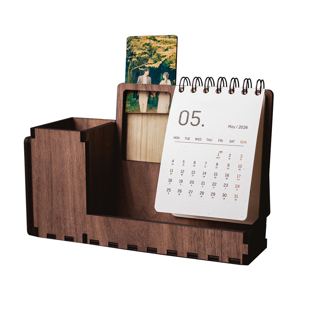 Lấy cảm hứng từ chiếc khung ảnh quen thuộc, tạo nên thiết kế kết hợp lịch và hình ảnh cá nhân. Giúp bạn theo dõi ngày tháng một cách thuận tiện, sản phẩm còn tạo nên một “góc ký ức” ấm áp ngay trên bàn làm việc, tựa như kỷ niệm và thời gian lặng lẽ song hành.