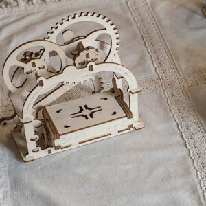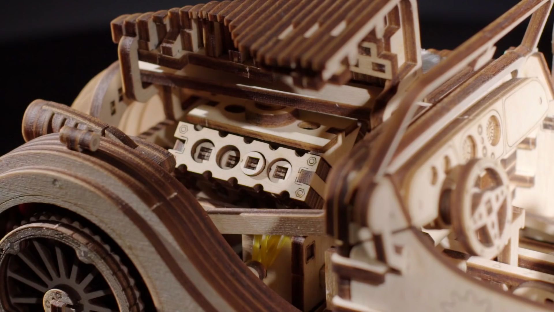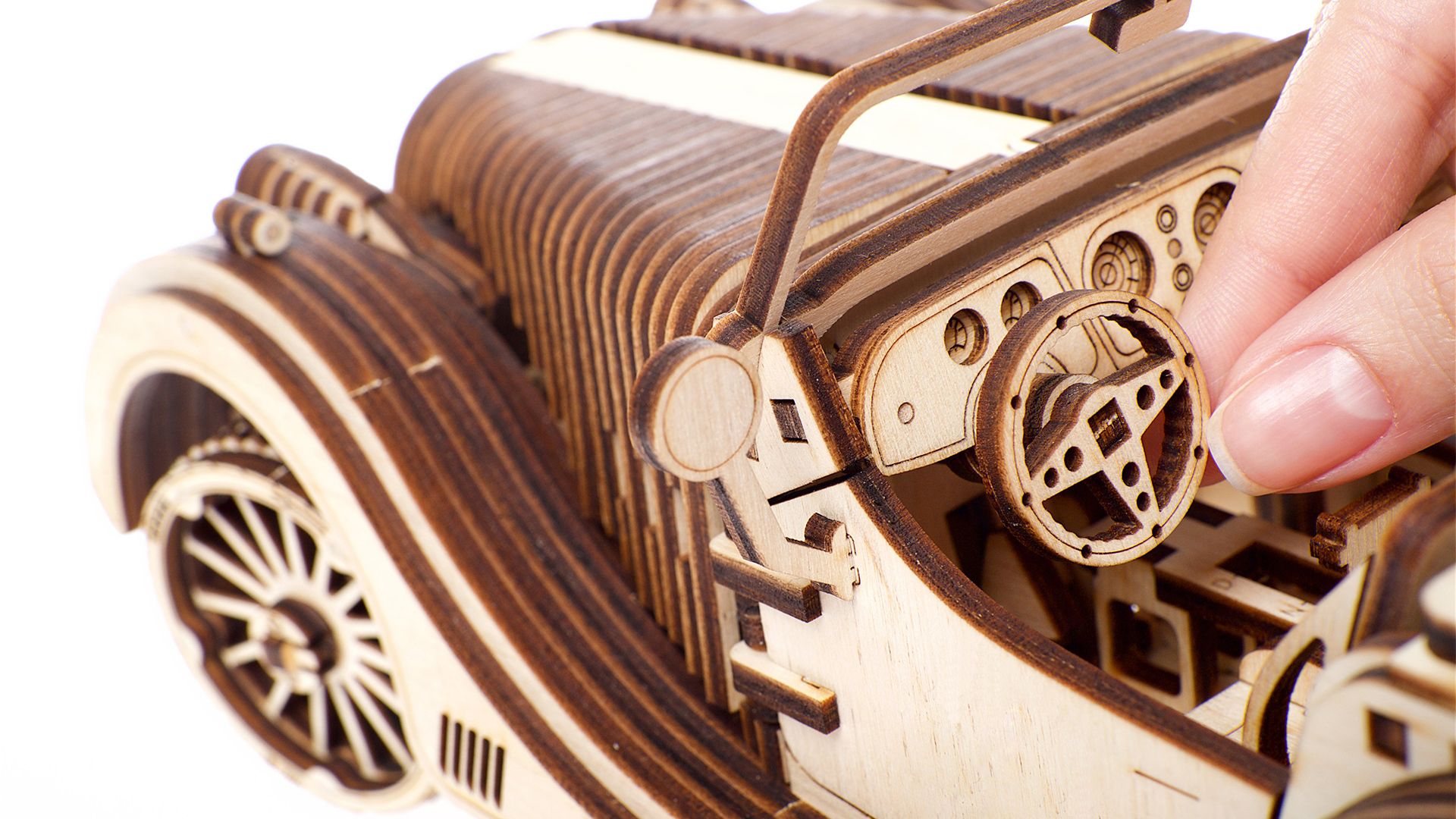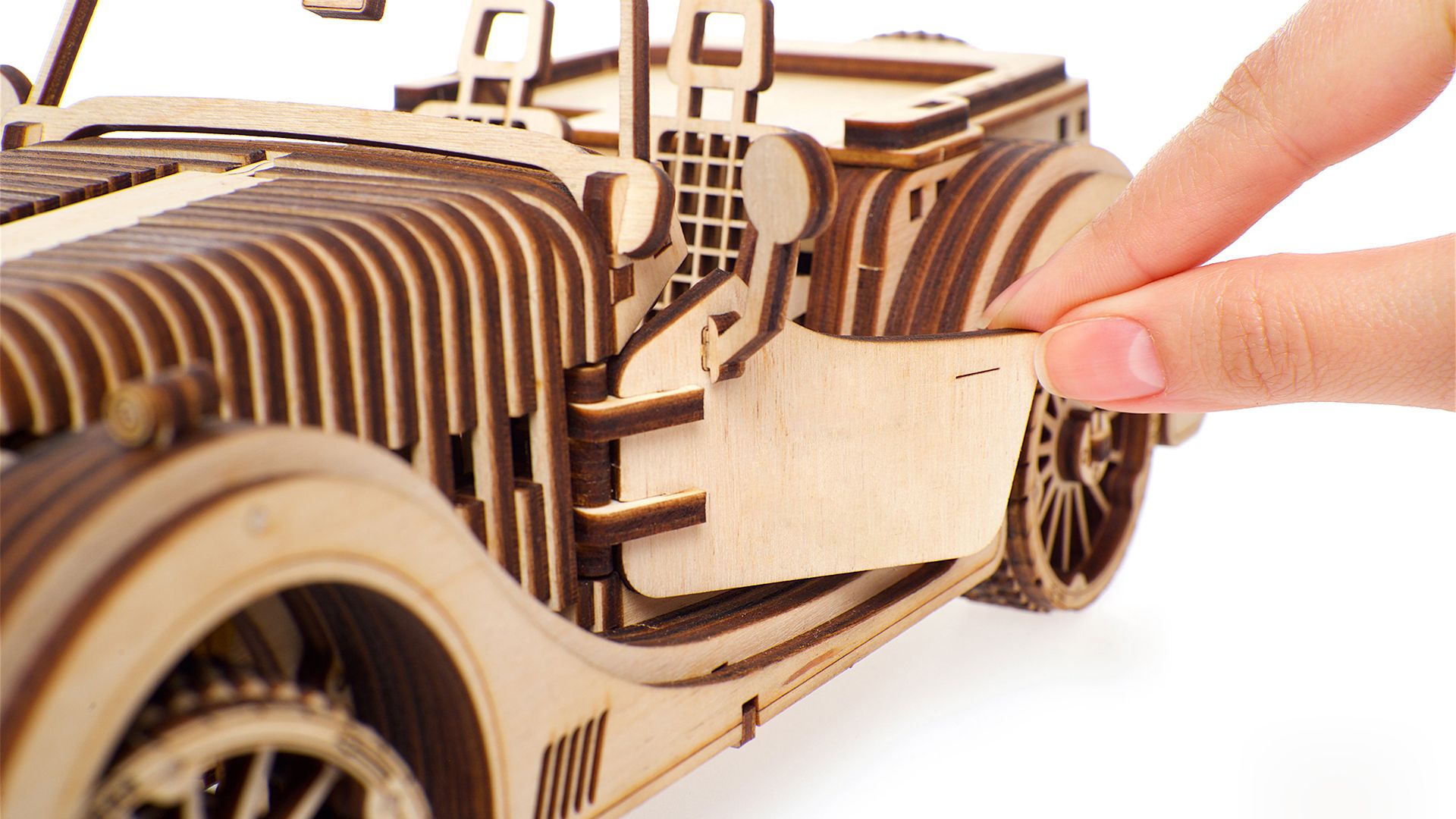 Cuộc phiêu lưu của bạn bắt đầu khi bạn mở hộp và trải nghiệm mùi dễ chịu của gỗ tự nhiên trong suốt quá trình lắp ráp, thử nghiệm và chơi. Bằng chính bàn tay của mình, bạn sẽ ghép các chi tiết bằng ván ép lại với nhau để tạo ra một tuyệt tác cơ học chuyển động 3 chiều.