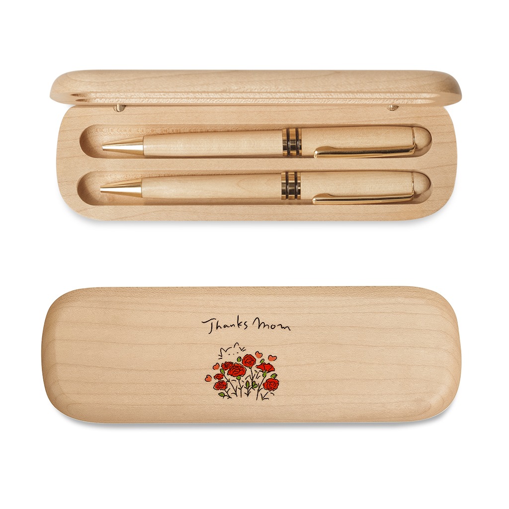 SET HỘP VÀ 2 BÚT GỖ MAPLE | HOA HỒNG