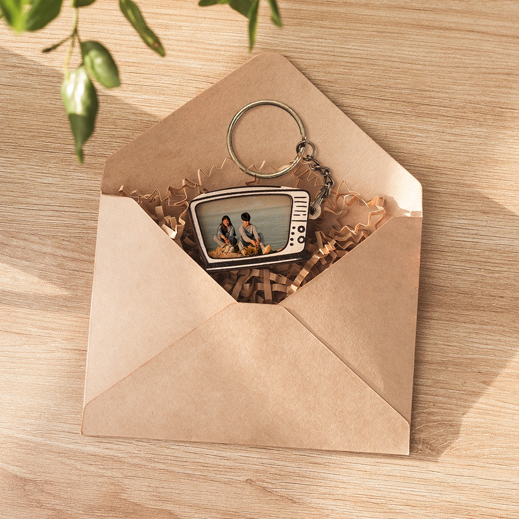 Lấy cảm hứng từ chiếc tivi cổ, biểu tượng của những năm tháng xưa cũ, nơi cả gia đình quây quần bên nhau mỗi tối. Mỗi chiếc móc khóa gỗ là lời thì thầm ấm áp từ ký ức.